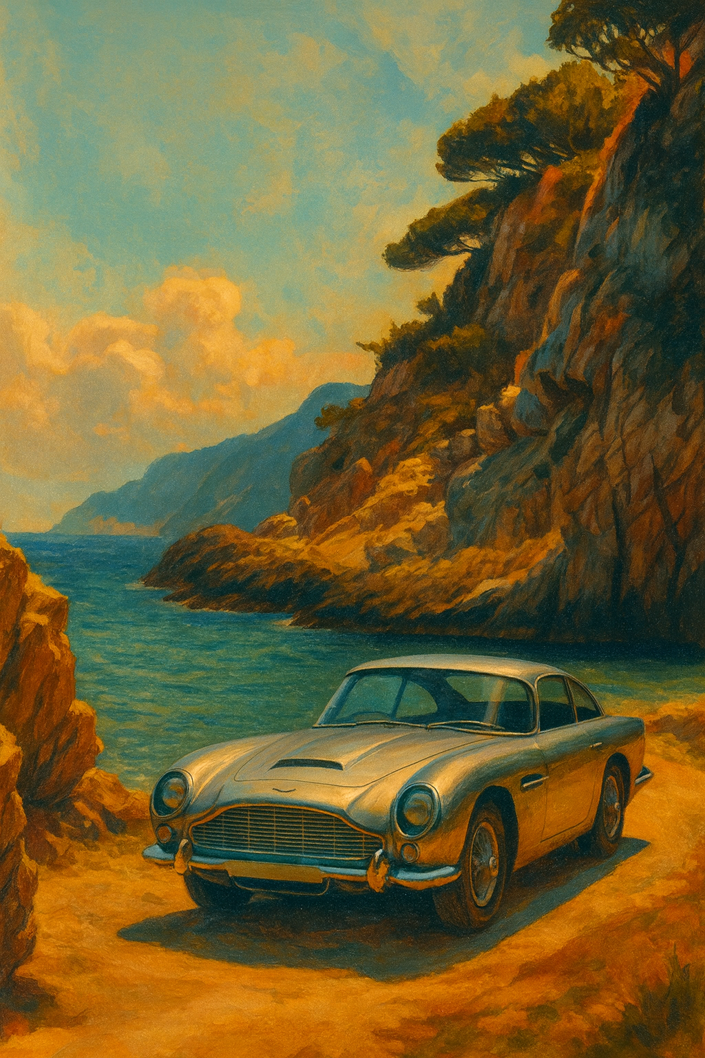 The Corsae 9 Throw captures the romance of the open road and the elegance of classic motoring heritage. Woven with rich texture and depth, it portrays a timeless grand tourer set against a sun-drenched coastal backdrop — cliffs, sea, and sky bathed in golden light.